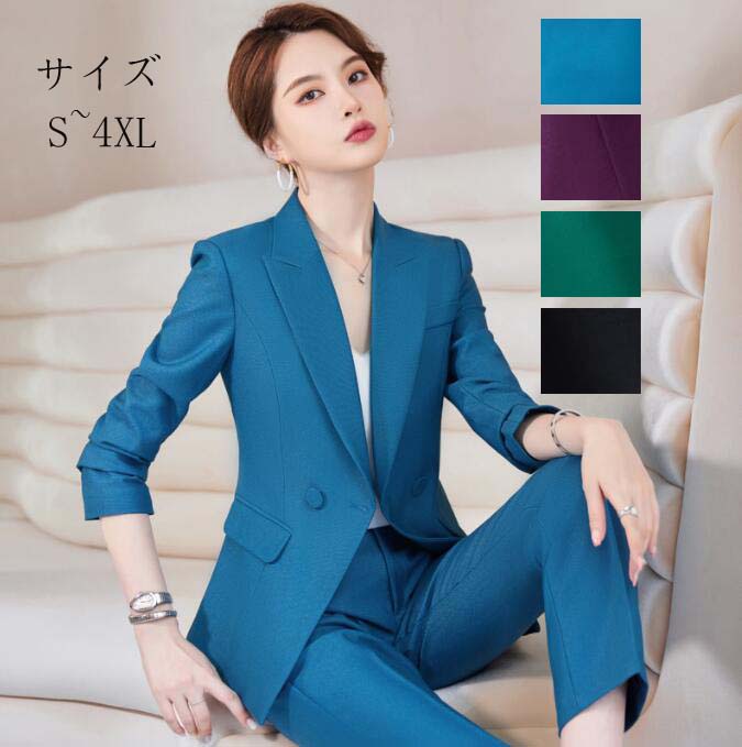 高品質 パンツスーツ ズボン ビジネススーツ リクルートスーツ セットアップ 2点スーツセット ジャケット+スカート パンツ S~4XL スリム きれいめ レディーススーツ 卒業式 結婚式 通 入学式