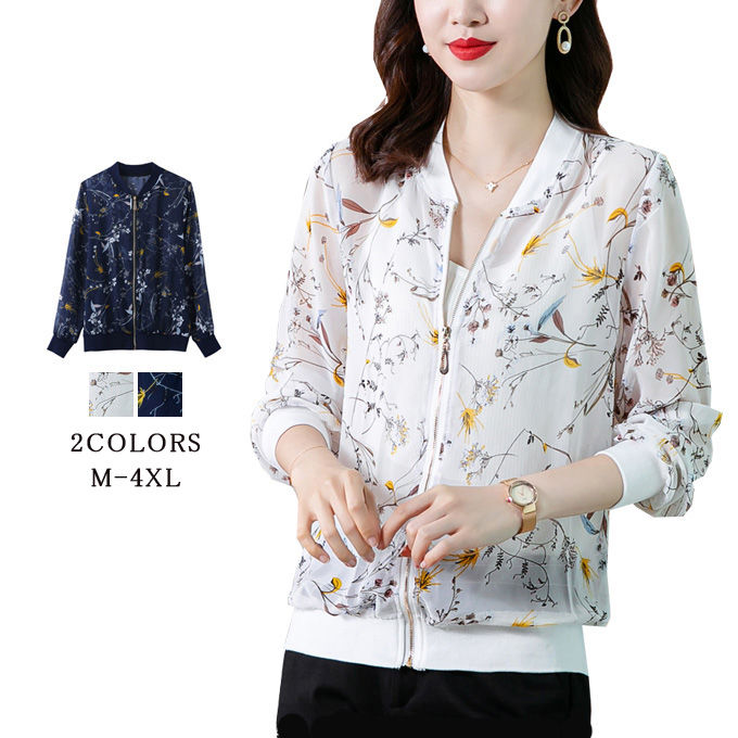 シースルーブルゾン 花柄 ジャケット レディース 透け感 カジュアル ジャンパー 長袖 アウター 羽織り UVカット 大きいサイズ オシャレ 春夏新作 薄手