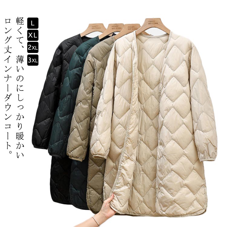 ダウンコート コート 軽量 保温 ノーカラー 薄手 インナーダウンコート あったか インナーダウン レディース ロングコート 秋 冬 ダウンジャケット ロング丈 暖かい 防寒 イン インナージャケット