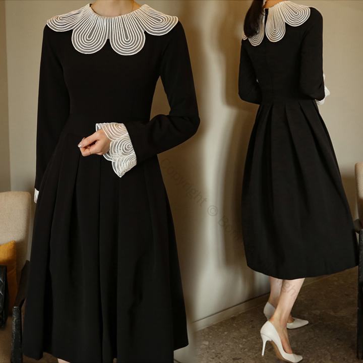 大人女性のスタイルアップ フレンチテイスト ブラックワンピース オフィスでも映える エレガントな花びらスリーブ トレンド感と上品さを両立 シックな着痩せシルエット