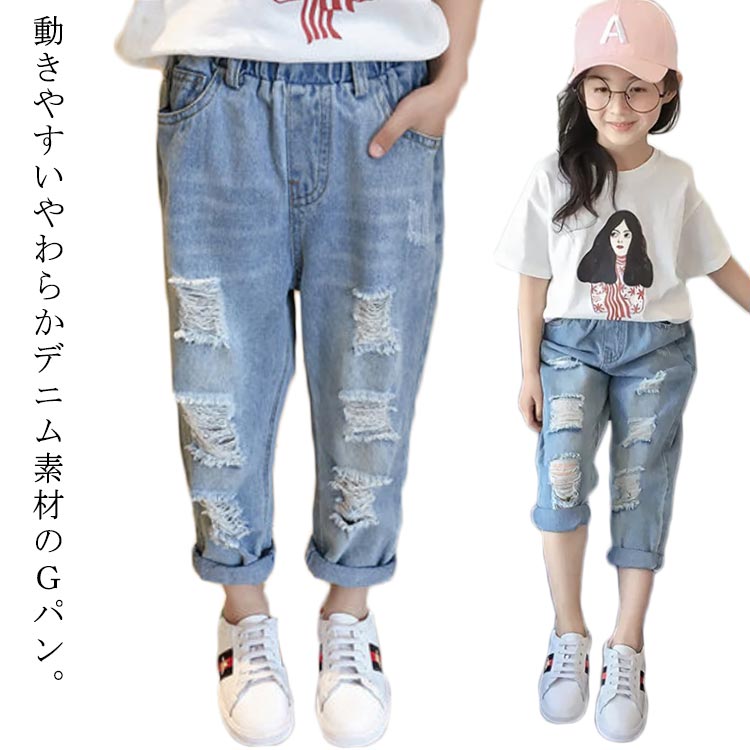 パン キッズ デニムパンツ ダメージ加工 ジーンズ 男女兼用 男の子 女の子 デニム 韓国子供服