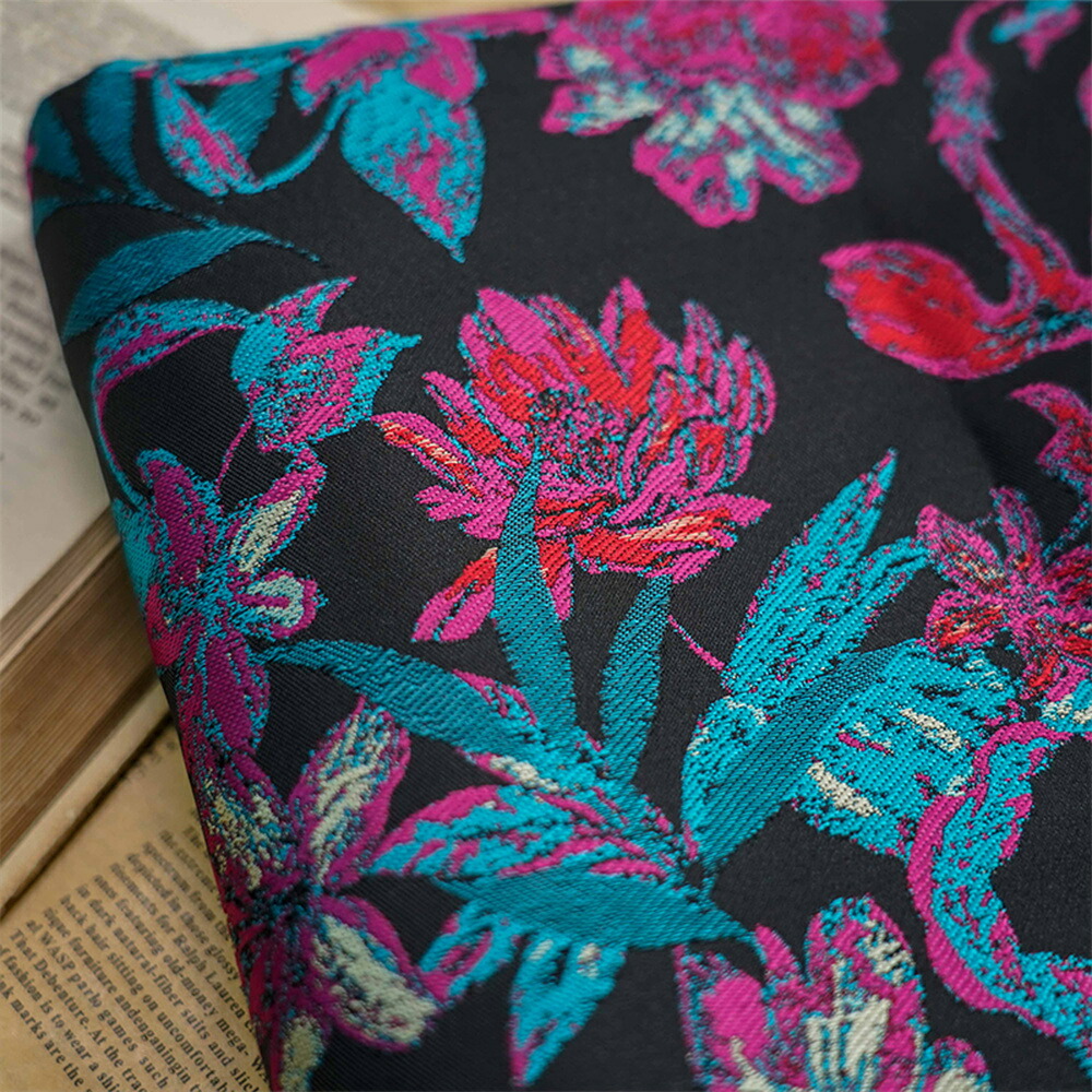 144幅 90単位 ジャカード生地 生地 布 布地 花柄 黒 ピンク生地 色織り生地
