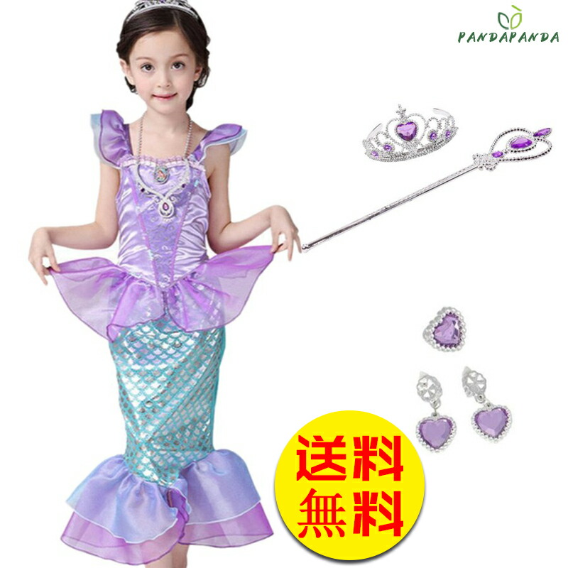 ハロウィン 仮装 人魚姫 子供服 プリンセスドレス リトルマーメイド アリエル 風 コスチューム ドレス 5点セット キッズ 発表会 演出 コスプレ Halloween 舞台 110~15 ワンピース