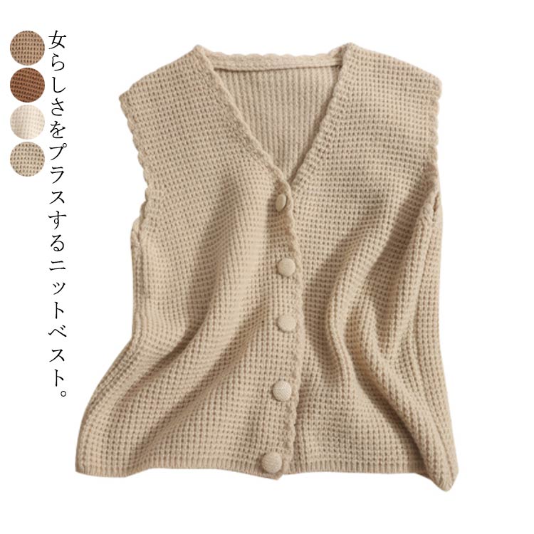 セーター 冬 ベスト ニット ネック ノースリーブ 前開き 春 秋 レディース