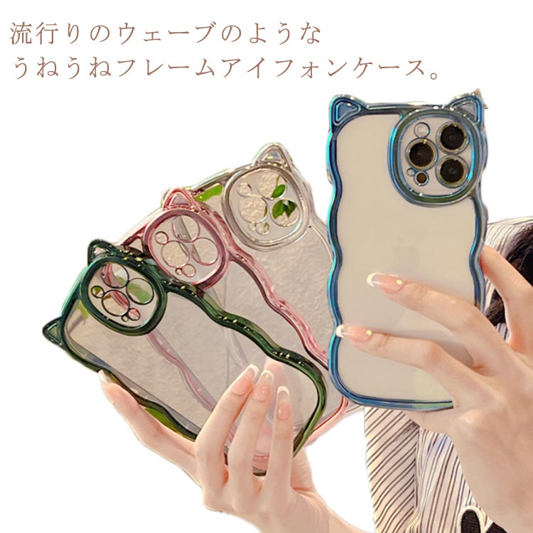 クリアケース iphone15pro なみなみ うねうね iPhoneケース iphone15 ねこ 女子 クリア 猫 韓国 シリコン 可愛い かわいい スマホケース 耐衝撃 透明 ipho ウェーブ