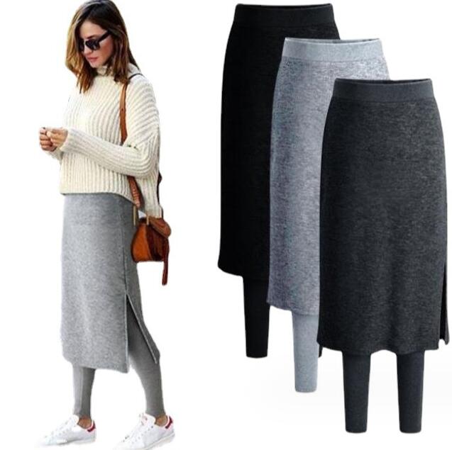 スカート付きレギンス スリットスカート 裏起毛 厚手 パンツ スカートレギンス レギンススカート スカート付きパンツ レギンス ボトムス 大きいサイズ