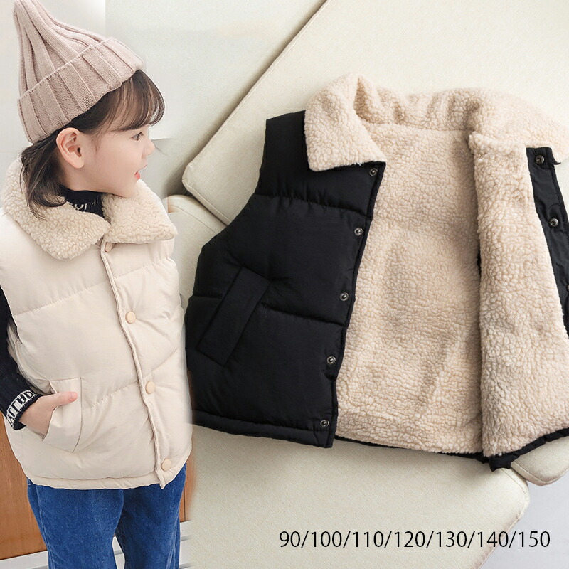 キッズ コート ダウンベスト ダウン ベスト 中綿入れ 裏起毛 子ども 防寒 女の子 男の子 中綿ベスト 羽織り ノースリーブ 綿 厚手 前開き ベビー