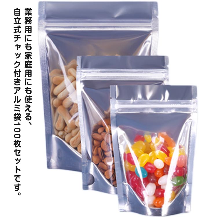 100枚入 自立式 チャック付き アルミ袋 コーヒー豆 保存袋 ジッパー付き袋 アルミ箔 小分け袋 冷凍用 遮光袋 フードセーバー 真空パック 防湿 収納袋 食品ポーチ 自宅用 防カビ