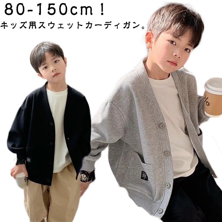 カーディガン アウター Vネック 春秋 スウェット 無地 羽織り 長袖 男の子 子供服 子ども服 カジュアル 通学 シンプル 通園 キッズ トップス 小学生 アウトドア スポーツ ポケット付き 中学生