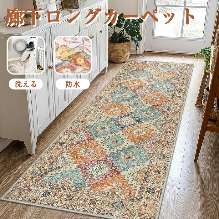 廊下敷きカーペット 洗える 滑り止め 廊下敷き マット ラグ オールシーズン 廊下 ズレない カーペット ペルシャ風 ボヘミアン風 おしゃれ 北欧 じゅうたん 冬用ラグ リビング 子 絨毯