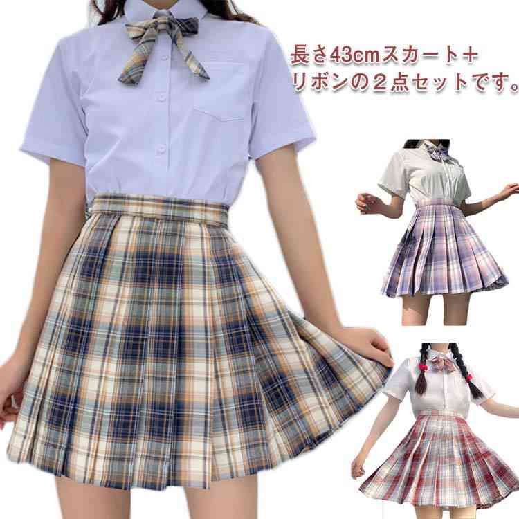 スクールスカート ハイウェスト 制服 プリーツスカート レディース チェック柄 中学生 通学 オールシーズン 女子高生 入学 学生服 春 高校生 夏 秋 スカート Aライン リボン コス ひざ丈