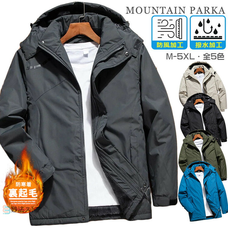 マウンテンパーカー メンズ ボアブルゾン 裏起毛 撥水加工 防寒 防風 トレッキングジャケット アウトドア 厚手 登山 キャンプ 自転車 秋冬 あったか バイク