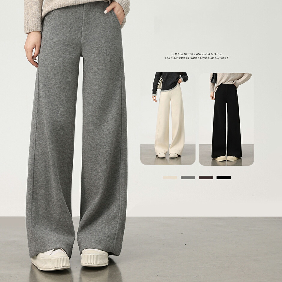 レディース ウールワイドパンツ 冬 新作 ハイウエスト ストレートパンツ 裏起毛 厚手 ロングパンツ ゆったり カジュアル 通勤 コーデ 体型カバー