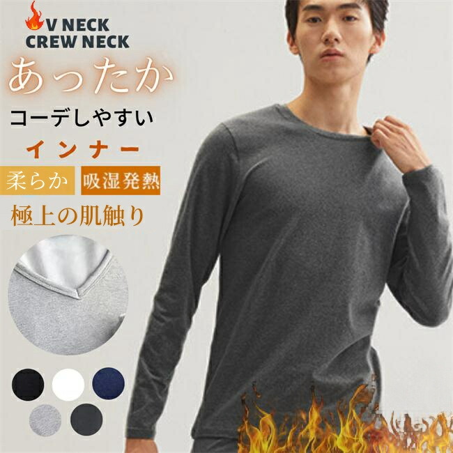 あったかインナー メンズ ヒートテック 防寒肌着 ネック 長袖シャツ トップス カットソー 冬用 保温インナー 裏起毛 防寒インナー インナーウェア 吸湿発熱 保温 福袋
