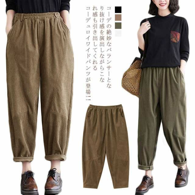 コーデュロイパンツ テーパードパンツサルエルパンツ ロングパンツ ボトムス ロング ゆったり ポケット付き やわらか ワイドパンツ 軽い レディース リラックス イージーパンツ 楽ちん 体型カ ルーズ