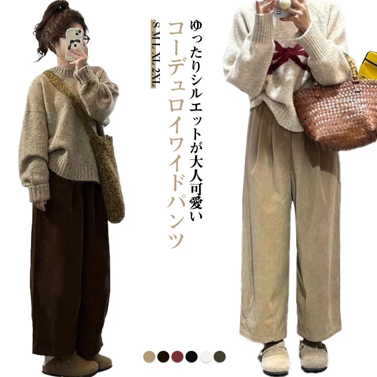 ワイドパンツ レディース きれいめ 低身長 ハイウエスト ワイド コーデュロイ 大きいサイズ コーデ 秋 トップス プレスパンツ 春 ストレートパンツ リラックス 冬 夏 ガウ ウェストゴム