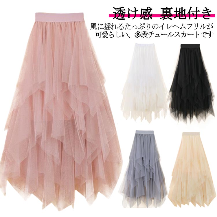 透け感 ロングスカート フレアチュールスカート ボリューム ウエストゴム レディース チュールスカート チュチュスカート 裏地付き マキシ丈 大人 ステージ衣装 お洒落 パニエ ダンス 衣装 可愛い
