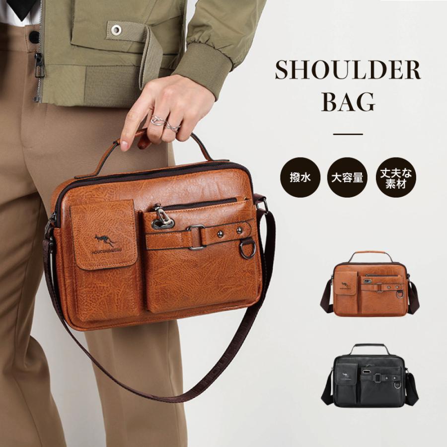 ショルダーバック メンズ バック 革 プレゼント 撥水 肩かけ ビジネスバック 紳士 鞄 PUレザー 通勤 ギフト 父の日 キレイめ おしゃれ 20代 30代 40代 シンプル
