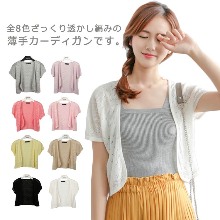 春 羽織り 透かし編み ボレロ 春夏 半袖カーディガン 全8色 サマーカーディガン ショート丈 カーディガン ニットカーディガン 透け ニット ライトアウター サマーニット 冷気対策 夏 秋 レ 薄手