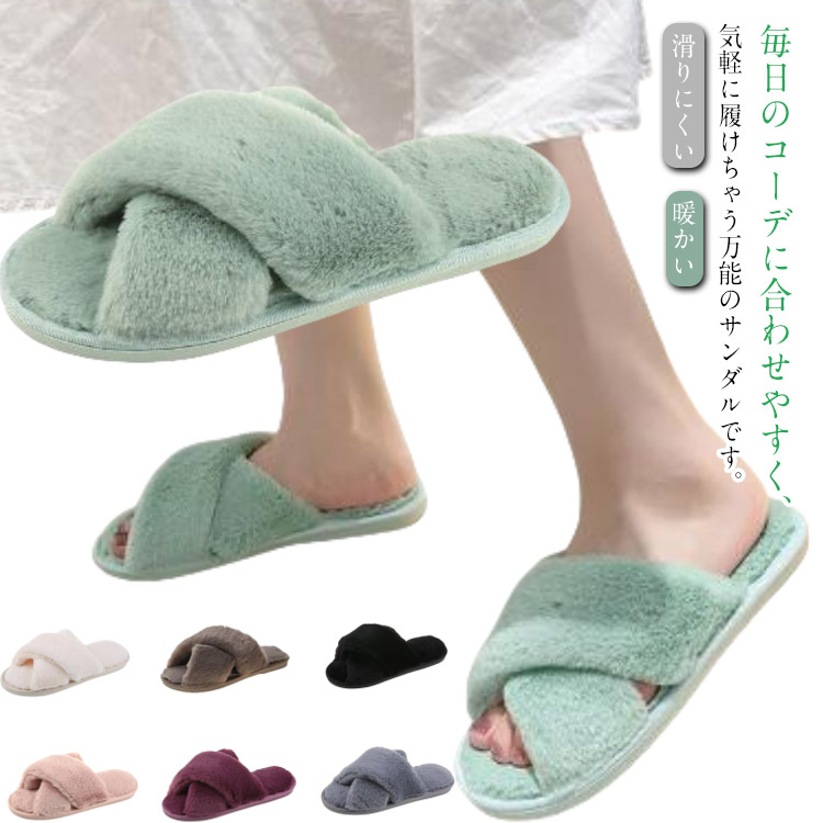あったか ルームシューズ 暖かい スリッパ 秋冬 レディース 可愛い フェイクファー おしゃれ ふわふわ 滑りにくい 室内靴 前あき 室内履き 防寒 軽量 洗える 来客用 保温