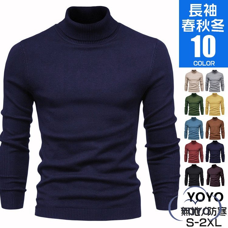 ニット メンズ タートルネック 長袖 暖かい セーター トップス カットソー ハイネック 春 冬 服 メンズファッション 秋