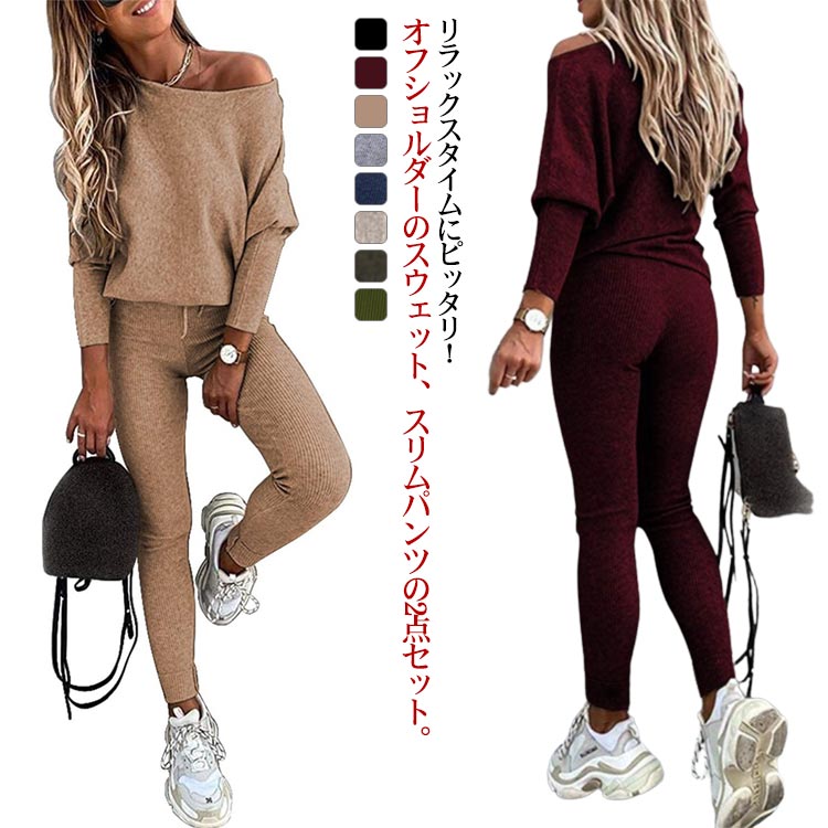 無地 部屋着 パンツ パジャマ ルームウェア 寝間着 長袖 2点セット セットアップ ウエストゴム スウェット ロングパンツ フィット トレーナー 上下セット ワンマイルウェア カジュ スリム