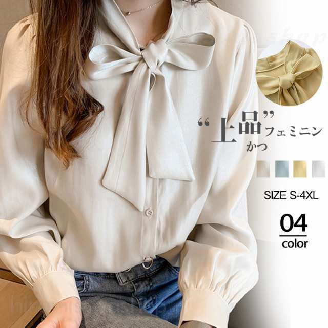 ブラウス レディース シャツ 長袖 リボン