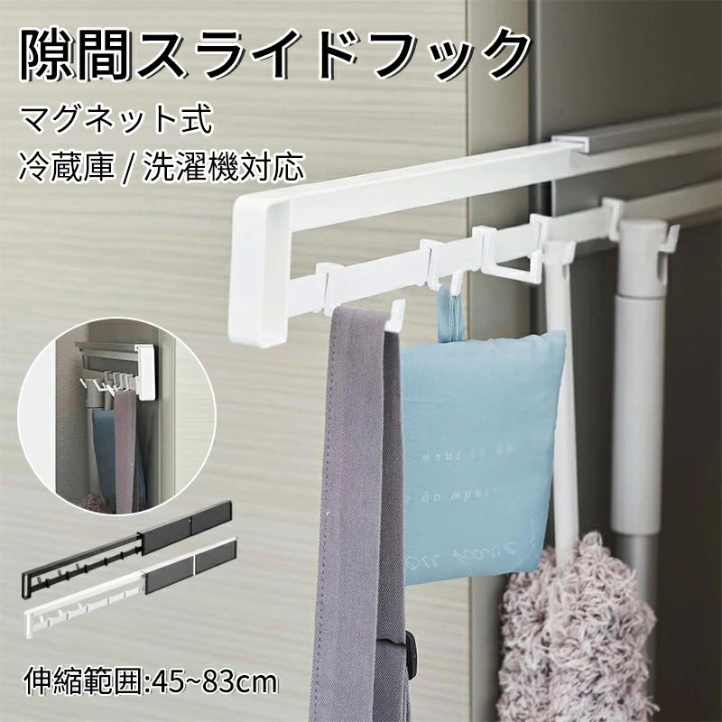 隙間 整頓 整理 便利 収納 浴室 バスルーム お風呂 台所 キッチン フック スライド スライド式 磁着 マグネット式 壁掛け 伸縮