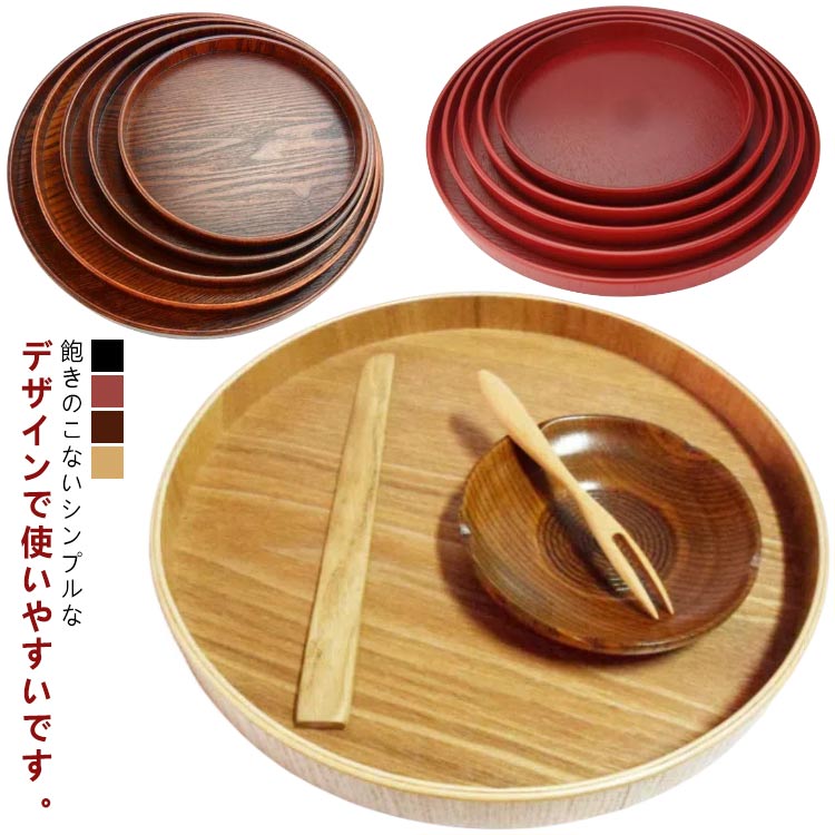 2枚セット 木製 トレー 丸盆 木製トレー カフェトレー 北欧 お盆 漆塗り 木製トレイ 丸 丸形 木目 ラウンドトレー おぼん おしゃれ キッチントレー ナチュラル シンプル 和食 大きい