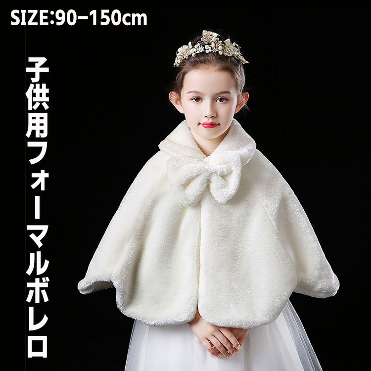 子供ファーボレロ 秋 冬 襟付き ファー 厚手 ケープ もこもこボレロ 発表会 子供服 フォーマル 結婚式 女の子用 衣装 女児 カーディガン子供 パーティーふわふわ 暖かい 白 七五