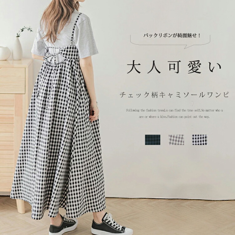 チェック ワンピース キャミソールワンピース レディース 夏 キャミワンピ 大きいサイズ チェック柄 aラインワンピース きれいめ 重ね着 キャミワンピース フレア ロング丈 レイヤード キャ ワンピ