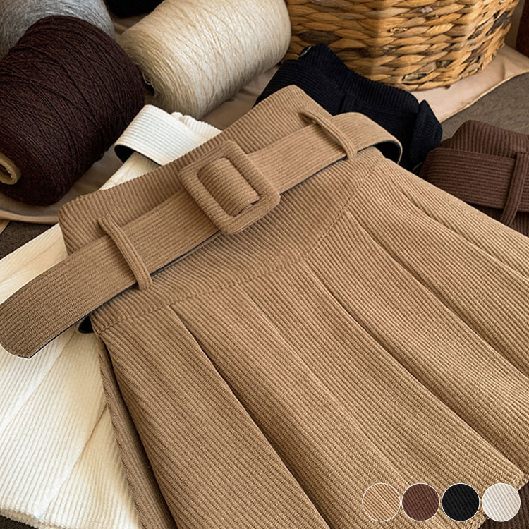 ベルト付き コーデュロイ プリーツ ミニスカート