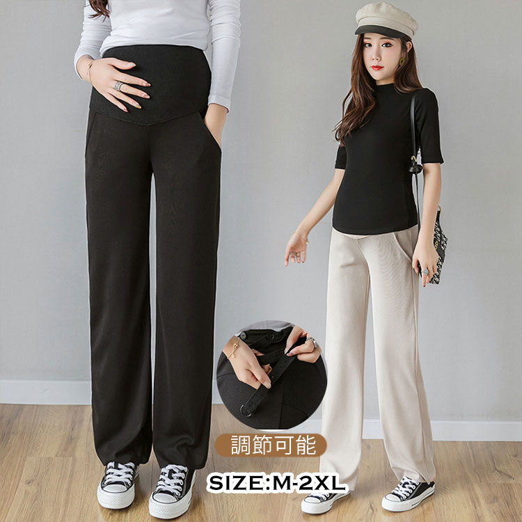 マタニティパンツ 妊娠服 ウエスト調整 ブラック ワイドパンツ ウエストゴム 調整付き 妊婦 妊娠 初期 中期 後期 産後 春 夏 秋 冬